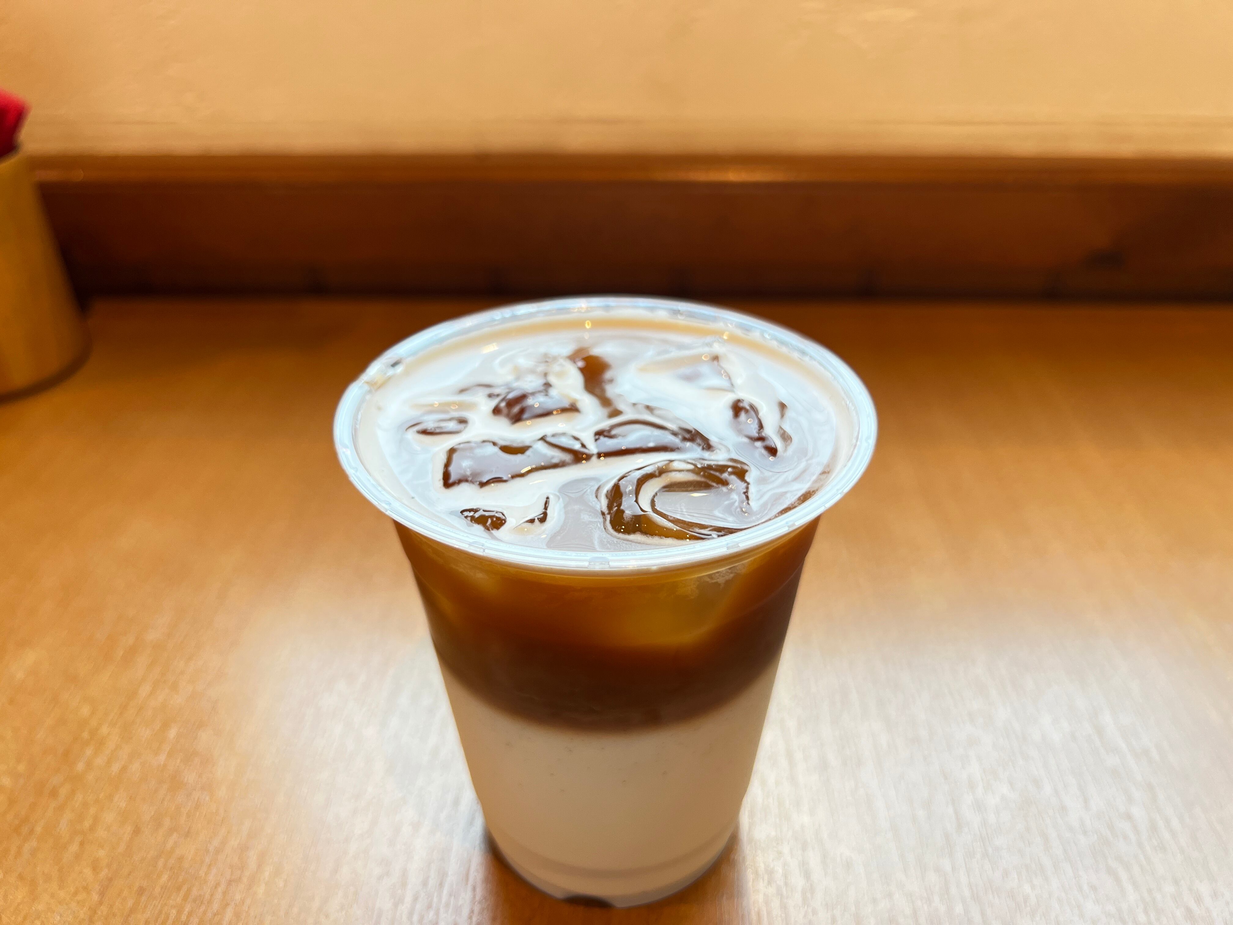 その味わいにこだわるだけでなく、見た目にもこだわりました。グラスの中にはコーヒーとクリーミーなミルクが美しいレイヤー状に重なり、まるでアートのような一杯です。